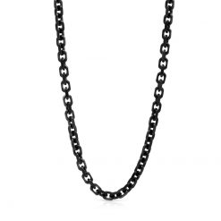 2面カットを施し、ブラックコーティングを掛けたアズキチェーン。幅5mmとボリュームがあり、ブラックカラーのペンダントトップと合わせると統一感抜群。サージカルステンレスにチタンコーティングを掛けているのでアレルギーに強いのも魅力の1つとなっています。