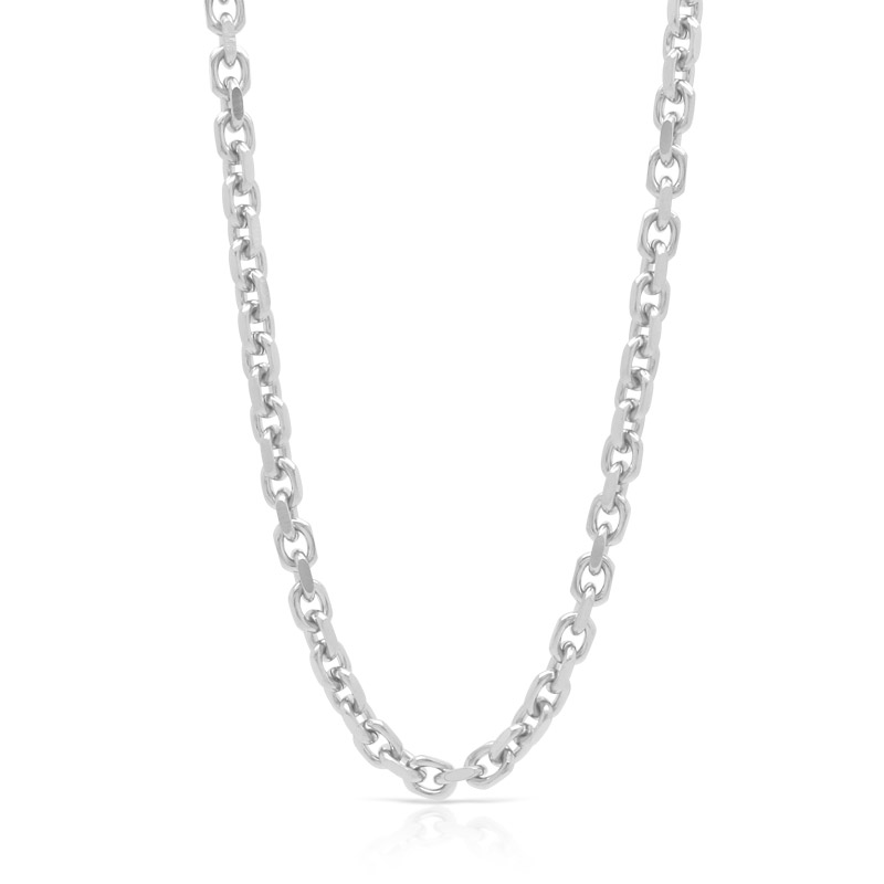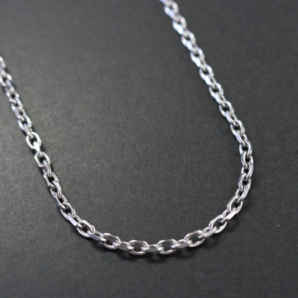 2面カットを施したアズキチェーン。カット面が輝くシンプルエレガントチェーンの代表格。幅5mmとボリュームがあり、大ぶりなペンダントトップとの相性が抜群。アレルギーが起きにくい特殊素材である医療用サージカルステンレス(SUS316L)を使用したシンプルチェーン。サビや変色にも強い為、耐久性の強さが求められるチェーンにうってつけの素材です。