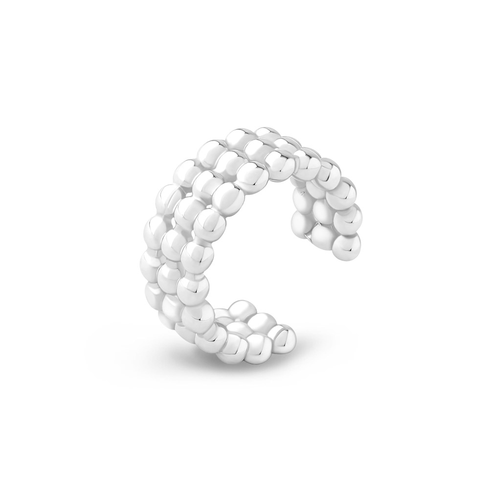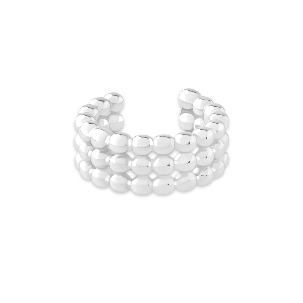 ボールチェーンを3段組み合わせたようなデザインのシルバーイヤーカフ。シンプルな中にも存在感のあるデザインとなっております。片耳用(1個売り)のお値段となっております。