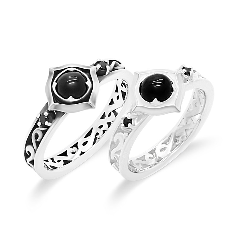 Re-PRODUCTION 限定商品。中央のブラックスターとサイドのジルコニアがデザインを引き立てるアラベスクペアリング。