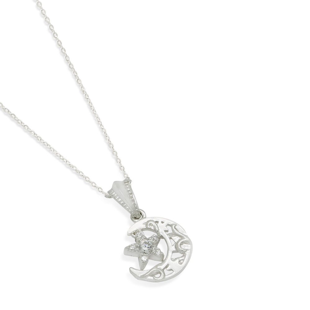 スター&ムーン ジルコニアシルバーネックレス FSPYK047