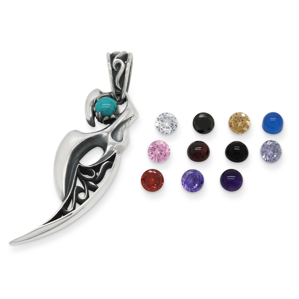 人気の水流モチーフペンダントにトライバルペンダントを合わせた作品。ペンダント上部には5mmの石座をセット、全14石から選ぶ事が出来ます。全長はバチカン含め約6,2cmとボリューム満点となっており迫力のある作品に仕上がりました。オプションでT字バーに変更可能となっております。限定5個のアイテムとなっておりますのでお早めに!