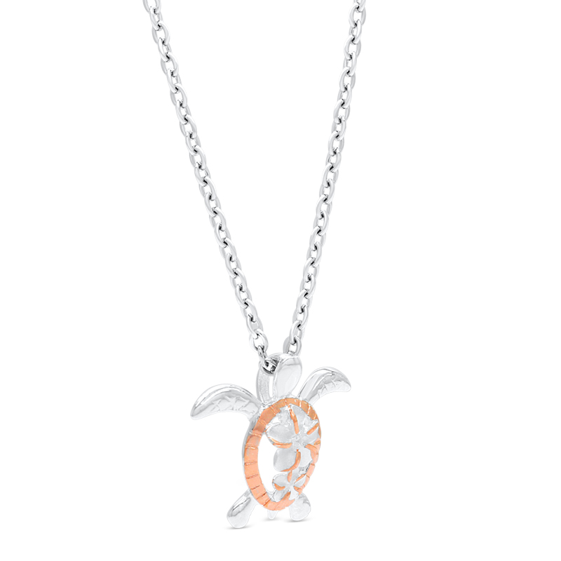 ハワイアンでは定番モチーフとなるホヌ(亀)。神の乗り物としてラッキーモチーフとして人気です。シルバーの優しいイメージに合ったデザインとホヌの可愛らしさが何とも良い雰囲気のデザインになりました。一点一点手作りになりますのでその素朴さも人気の秘密です。
