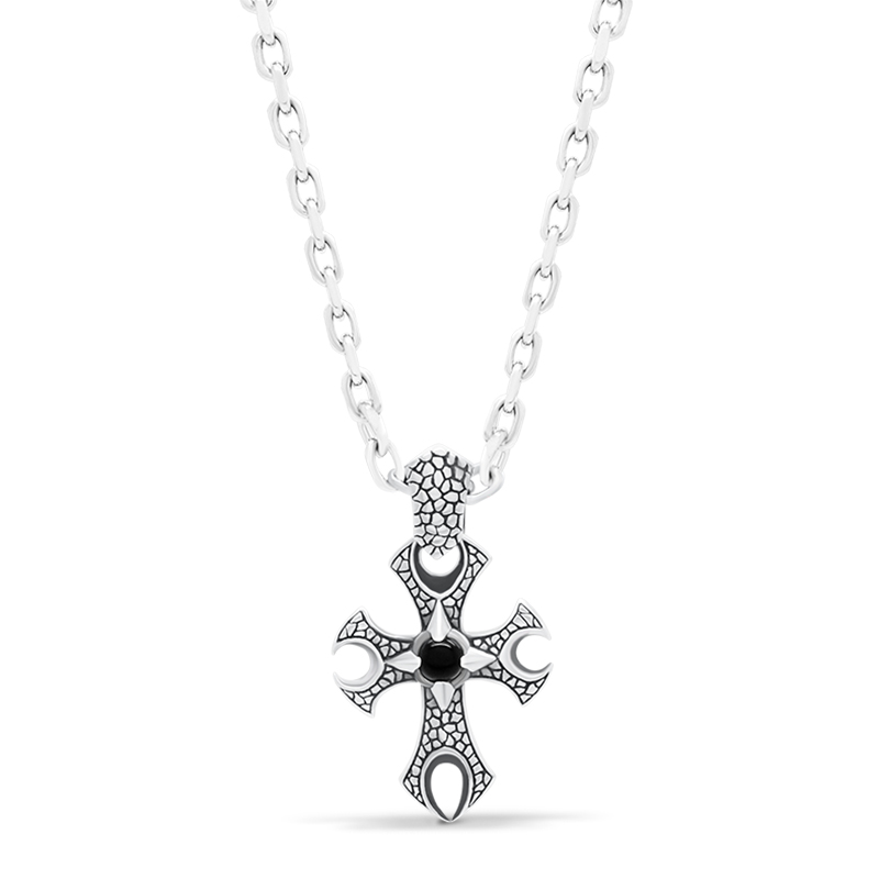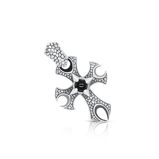 有機的なテクスチャーにクロスの力強さを合わせたデザイン。中央のオニキスも美しく、ハードな印象に仕上げってます。