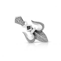 王家の紋章であるリリー(百合)をモチーフにデザイン。中央にセットされたバケットカットのオニキスが高貴なイメージに花を添えるデザイン。