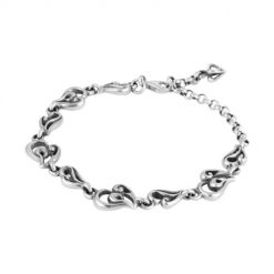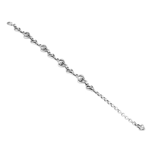 FREE STYLEを代表するアラベスク柄を基調にハートリンクブレスレットを作りました。いぶし加工によりアンティーク感と陰影感が強調され、シルバー独特の存在感を放ちます。アジャスターによって着け心地も調整でき、エンドに付く立体的なハートのチャームが揺れるたびに可愛い仕様になってます。