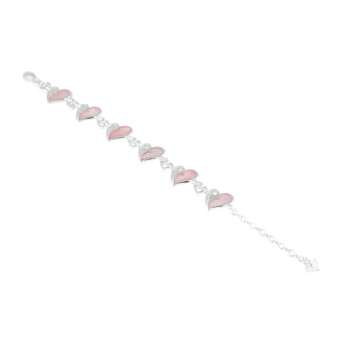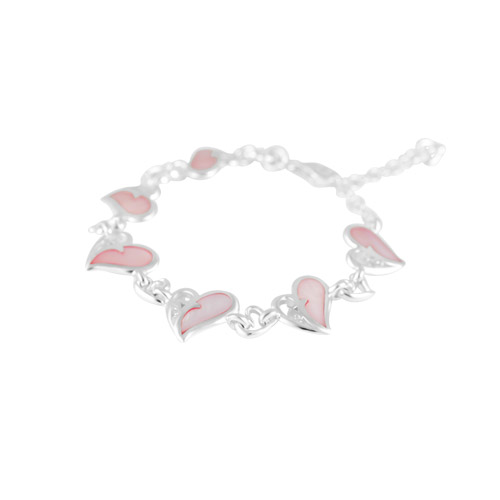 ピンクのシェルが印象的なシルバーブレスレット。アラベスクによるハートシェイプが美しい曲線を描き女性らしいフェミニンな表情にデザインしました。シェル独特の光沢感が魅力的です。アジャスターによって長さを自由に選ぶことが出来ます。シルバーの雰囲気とシェルのバランスが絶妙な美しさを引き立てます。