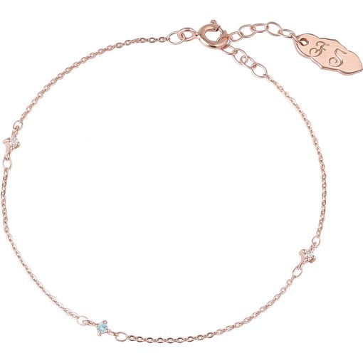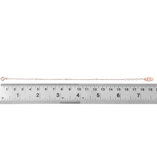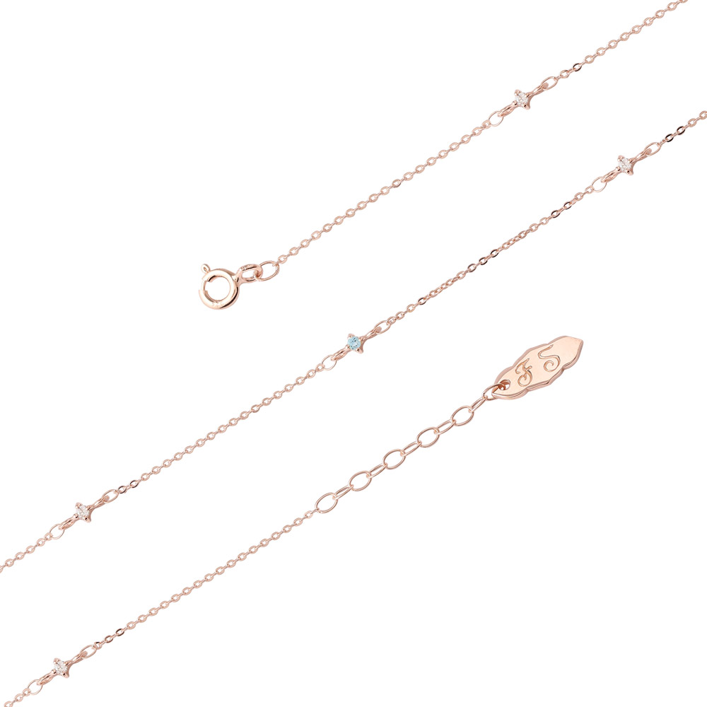 チェーンの細さ1㎜の極細アズキチェーンを使用したレディースシルバーブレスレット。シルバーだからできるとても繊細な編み方表現された細いチェーンです。ブレスレットの途中にブルートパーズを1石とキュービックジルコニアを2石セットしました。ピンクゴールドのコーティングを施し女性らしいイメージに仕上がっております。アジャスターが2cm付いてるので、16cm~18cmの長さでお使い頂けます。