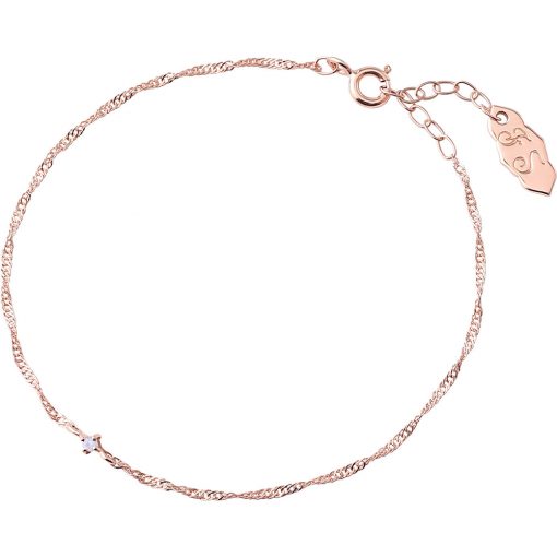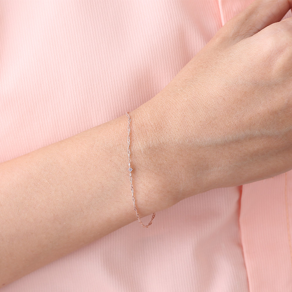 チェーンの細さ1㎜の極細ツイストチェーンを使用したレディースシルバーブレスレット。とても繊細な編み方によって表現された細いツイストチェーンです。ツイストを掛けることでチェーンに多面的な輝きを与えることができ、キラキラと輝く独特の質感が特徴です。ピンクゴールドのコーティングを施し、女性らしいイメージに仕上げました。アジャスターが2cm付いてるので、16cm~18cmの長さでお使い頂けます。