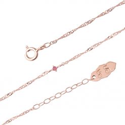 チェーンの細さ1㎜の極細ツイストチェーンを使用したレディースシルバーブレスレット。とても繊細な編み方によって表現された細いツイストチェーンです。ツイストを掛けることでチェーンに多面的な輝きを与えることができ、キラキラと輝く独特の質感が特徴です。ピンクゴールドのコーティングを施し、女性らしいイメージに仕上げました。アジャスターが2cm付いてるので、16cm~18cmの長さでお使い頂けます。