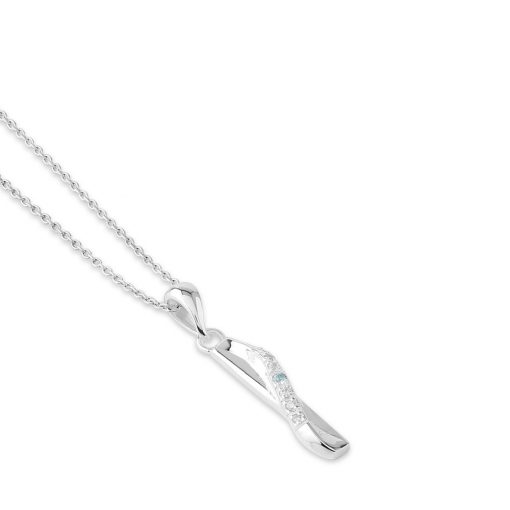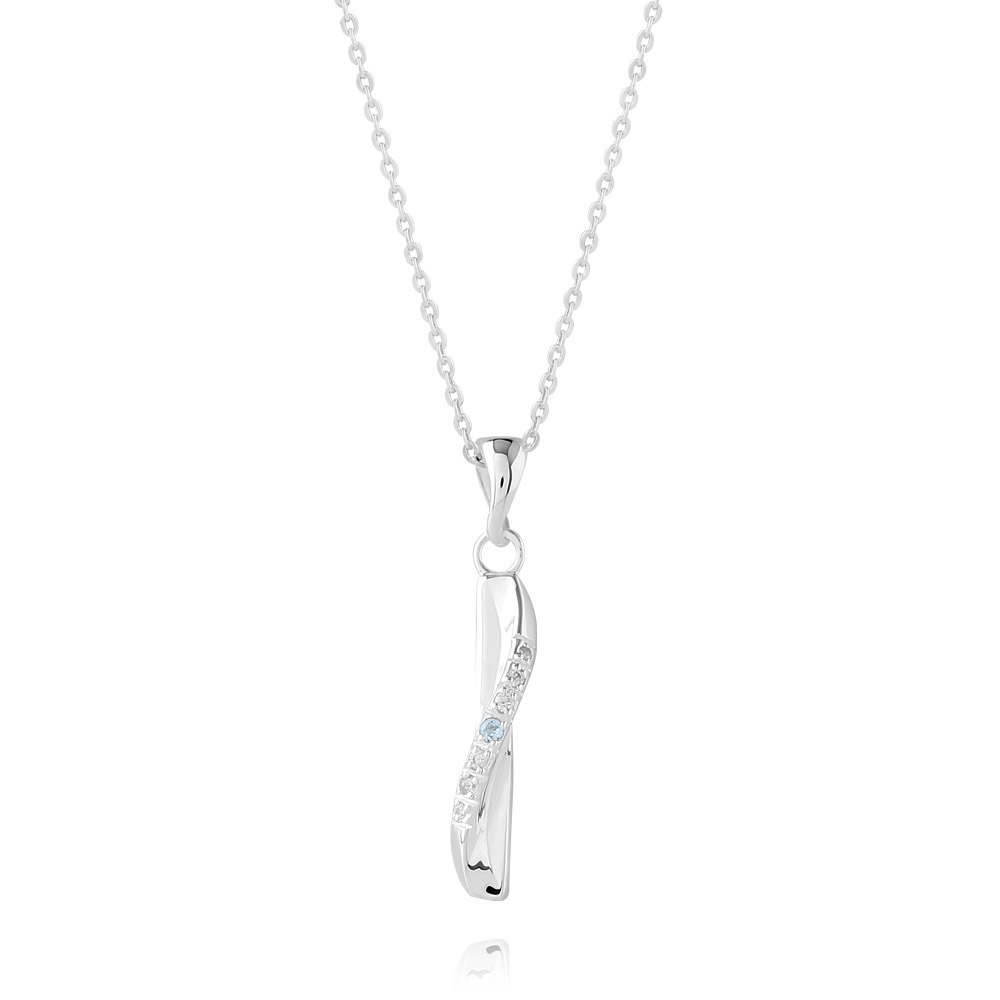 ペンダントトップをツイストさせた様なデザインが特徴のシルバーネックレス。表面にはジルコニアを6石とブルートパーズを1石、裏面にはハート型の石座に12種類から選べる誕生石を1石セットしました。記念日や誕生日のプレゼントに最適なアイテムとなっております。付属のアズキチェーンは40cm~45cmのお好きな長さでお使い頂けます。