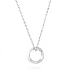 ペンダントトップにツイストをかけたシルバーネックレス。美しい光沢感が描き出す線が弧を描きます。ペンダント中央下部にピンクジルコニアを4石とダイヤモンドを1石セットしました。FSP1012-M、FSP1012-M-BLとのペアセットもおすすめです。付属のアズキチェーンは40cm~45cmのお好きな長さでお使い頂けます。