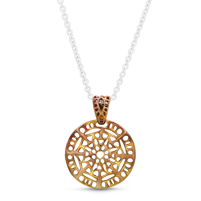 レース細工の様な美しいメダルネックレス。アンティークゴールドのコーティングによって古美の美しさを表現しました。ボリューム感もあり個性的なコーディネイトにベストマッチ。