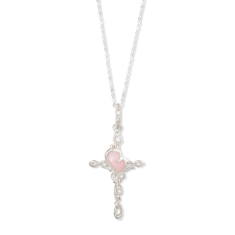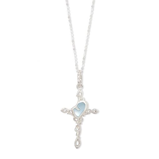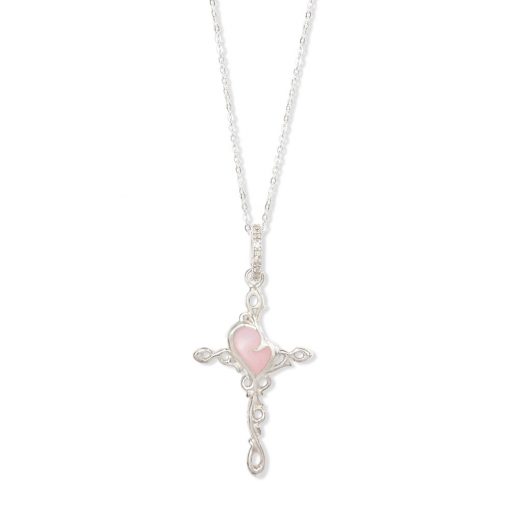 中央に配置されたハートストーンは、ピンクシェルとブルーシェルの2色を使いリバーシブル。服のコーディネイトに併せ使い分けれる嬉しいネックレス。