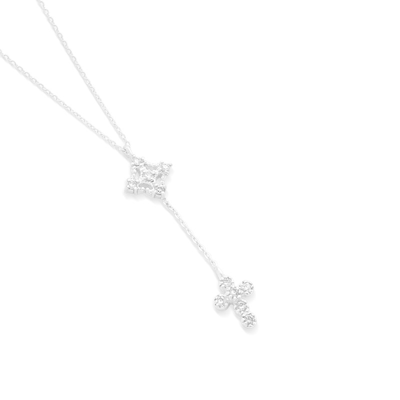 最小のパヴェストーンをふんだんに使った可愛らしいキラキラとした表情のロザリオ風ネックレス。Y字にデザインすることでネックレスに動きとシャープさを表現しました個性的なネックレスです。極細シルバーチェーン40㎝(アジャスター5㎝)が付属しております。