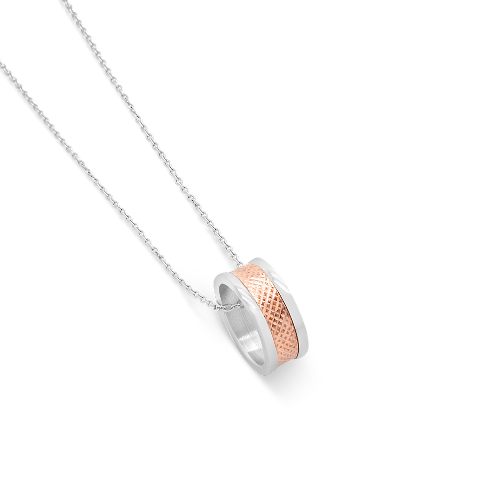 カラーリングの美しいステンレスサークルネックレス。チタンコーティングによる美しいカラーリングで胸元に好印象を与えます。医療器具に使われる素材と同じステンレスを使用しているので、金属アレルギーの方でも安心してご着用いただけます。付属のチェーンは40cmか45cmのお好きな長さでお使い頂けます。