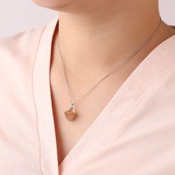 立体的なキューブネックレスにゴールドのハートのデザインをしました。ステンレスの上品な輝きに、ゴールドチタニウムコーティングのハートが可愛らしいネックレス。医療器具に使われる素材と同じステンレスを使用しているので、金属アレルギーの方でも安心してご着用いただけます。付属のチェーンは40cmとなっております。