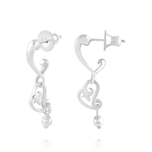 人気のハートモチーフが絡み合ったシルバーピアス。耳元で揺れるハートモチーフの先にはパールをそれぞれ一石セットしました。こちらの商品は両耳用2個セットでのご用意となります。