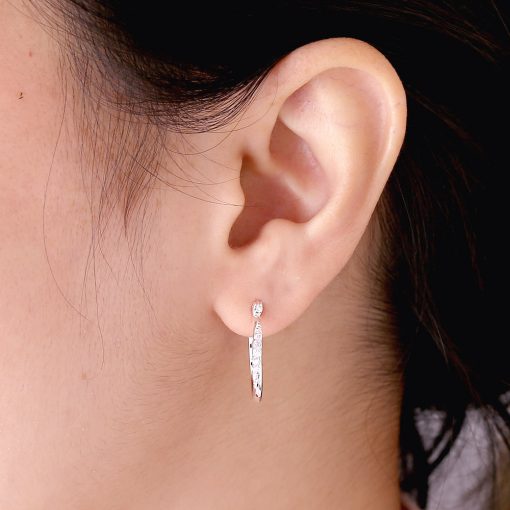 美しい曲線で表現されたデザインが魅力のシルバーフープピアス。連なってセットされたキュービックジルコニアが作品に華やかさをプラスします。シルバーの素材の色を生かした白仕上げとなっております。両耳用(2個売り)の価格となっております。
