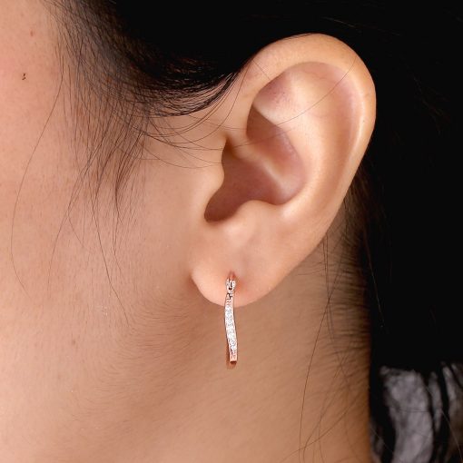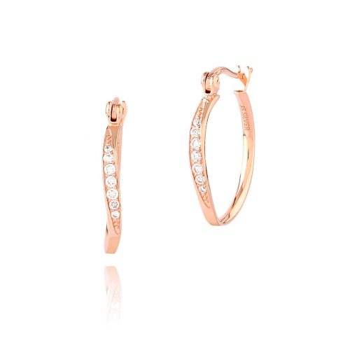 ピアスのフロント部分をツイストさせたデザインがポイントのシルバーフープピアス。連なってセットされたキュービックジルコニアが作品に華やかさをプラスします。ピンクゴールドのコーティングを施し女性らしい印象に仕上げました。両耳用(2個売り)の価格となっております。