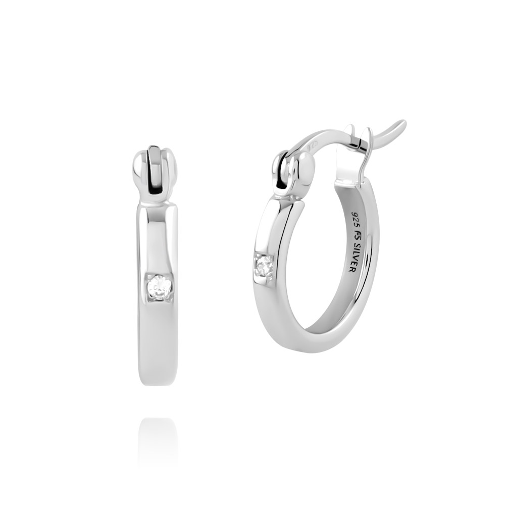 人気のシルバーフープピアスに小さいサイズが登場しました。毎日着けるものだからシンプルに着けやすいデザインに仕上げました。つるんとした曲面が優しい表情を作り、レディースリングの中央にはキュービックジルコニアをあしらい華やかさをプラス。シルバーの素材の色を生かした白仕上げとなっております。両耳用(2個売り)の価格となっております。