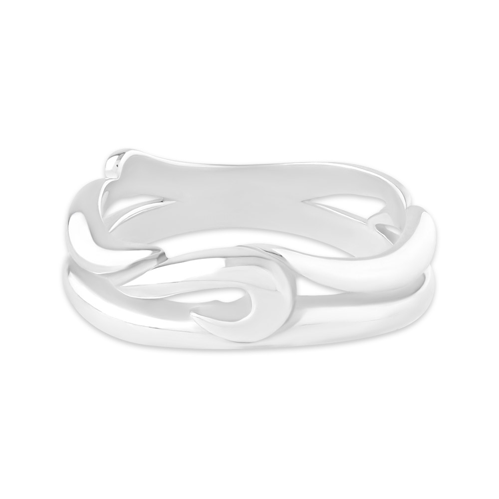 リング半分に大胆なアラベスクのデザインをあしらったシルバーリング。やわらかい曲線のデザインが特徴のシンプルで使いやすいリングとなっております。