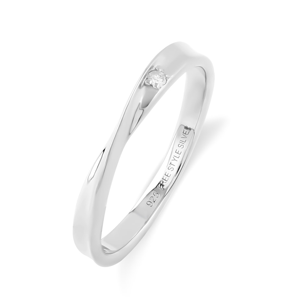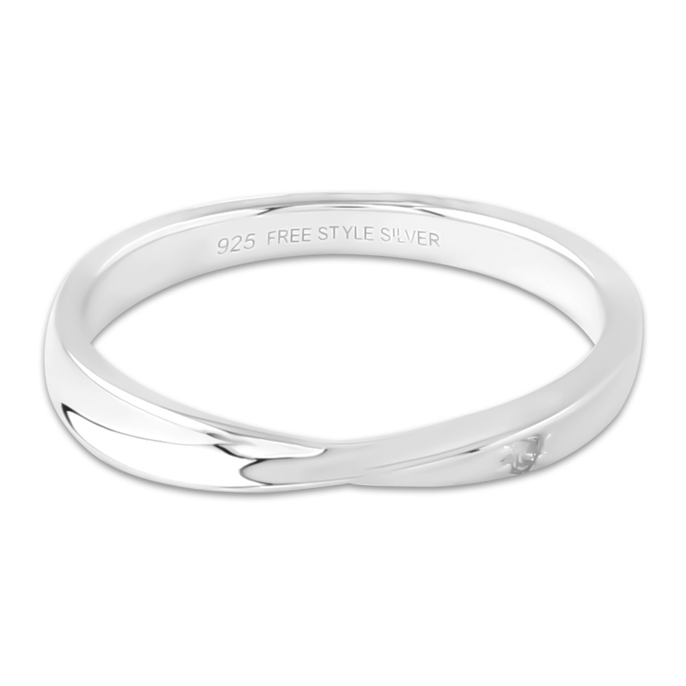 リング中央部分にひねりを加え「永遠∞インフィニティ」をモチーフにしたシルバーリング。中央部分にダイヤモンドを一石あしらい、シンプルな中にも華やかさのあるデザインに仕上げました。シルバー素材そのままの色を活かした白仕上げとなっております。FSR951-MSVとのペアセットもおすすめです。内側にお名前や記念日などの刻印が可能です。