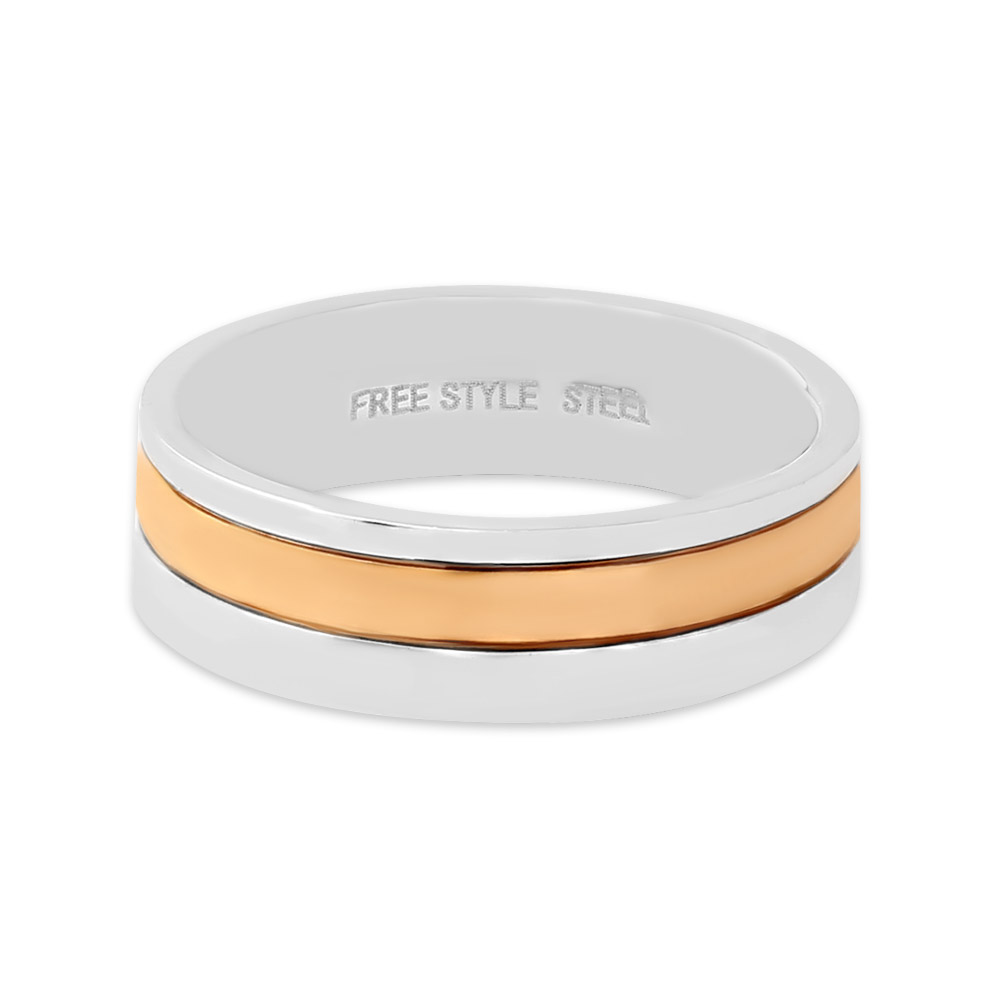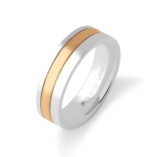 平打ちリングに施されたカラーコーティングラインが、シンプルな中にも個性を感じさせるステンレスリング。リングの内側を丸く仕上げてあるので着け心地がとても良いです。ステンレス素材なので金属アレルギーの方でも安心してお使いいただけます。リング内側には刻印も可能です。