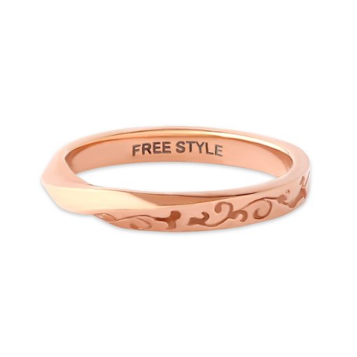 シンプルな中にもFREESTYLEらしいアラベスクのデザインを彫り込んだ逸品。ステンレスキャストで加工し、シルバーのように流麗なデザインでありながらアレルギーフリーの素材で作られたアイテムは、今までの概念を覆す新しいアクセサリーです。チタンによりピンクゴールドのコーティングを施しています。
