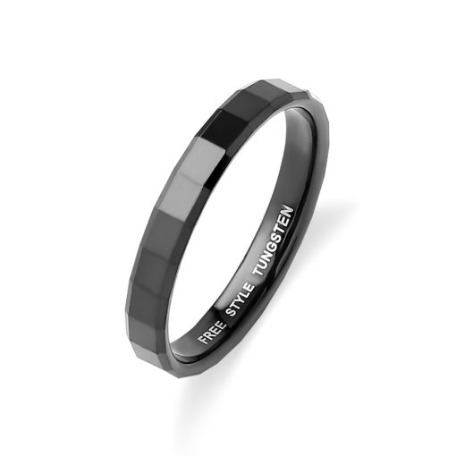 正方形にカットされたブラックコーティングタングステンリング。ラグジュアリー感を演出し、ブラックコーティング特有のシックな輝きが魅力の一つ。幅3mm、バランスの取れたデザインに仕上がっており、どこの指にでもオススメ出来る一品。サイズ展開は7号から21号、奇数サイズで揃っておりサイズも充実。自分用はもちろん、プレゼント用としてもオススメ。