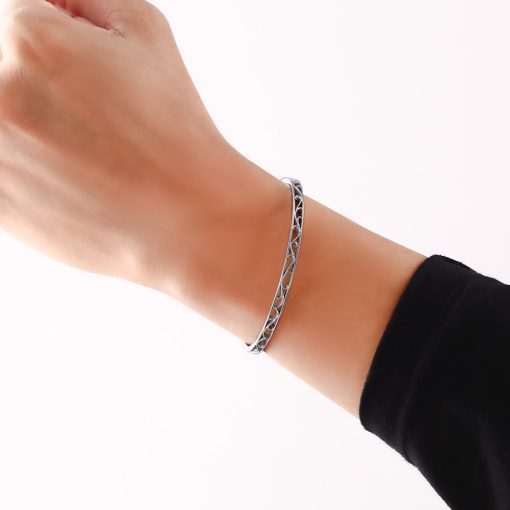 アラベスク 透かし彫り ステンレスバングル シルバーカラー FSSTBG019