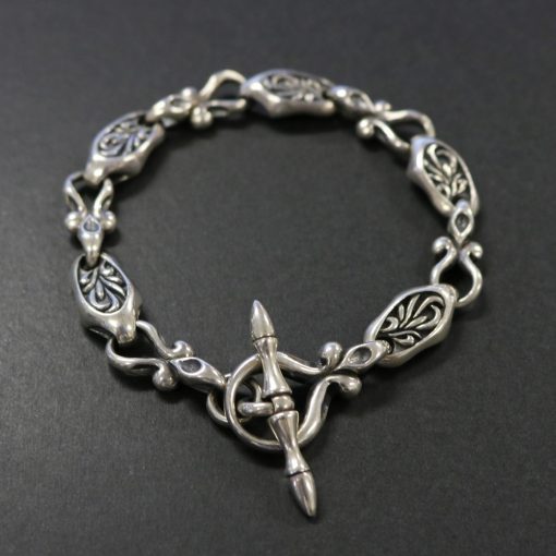 レリーフ状にデザインされたアラベスクパーツと、アラベスクリンクを交互に組み合わせることで、ブレスレットに動きやすさとデザインに複雑さを取り入れました。シルバーの重厚感あるデザインに仕上げました。