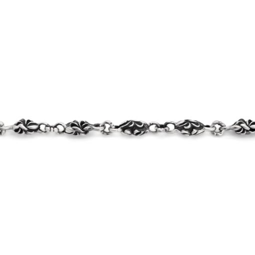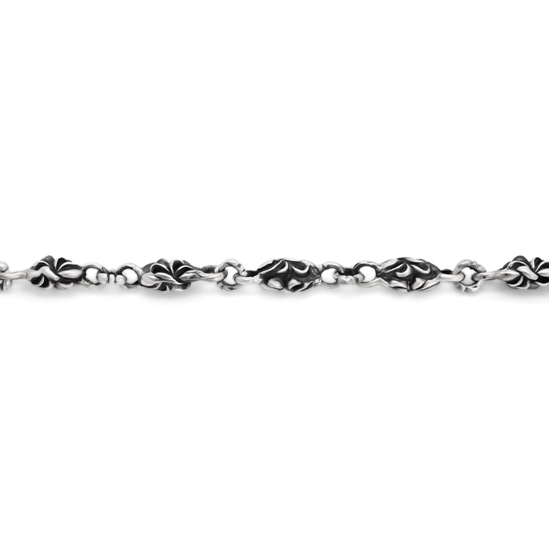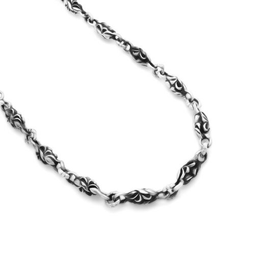 フリースタイルを代表するモチーフ、アラベスクが掘り込まれており、連続するモチーフから奥深い世界観が堪能できるネックレス。いぶされた銀が醸し出す重厚感とモチーフの美しさが映えるフリースタイルのマスターピースと呼べる逸品。長さも47㎝とネックレスとして使いやすいサイズにしました。