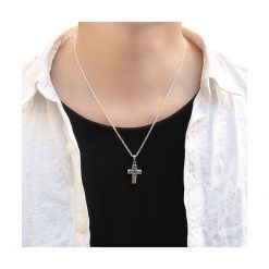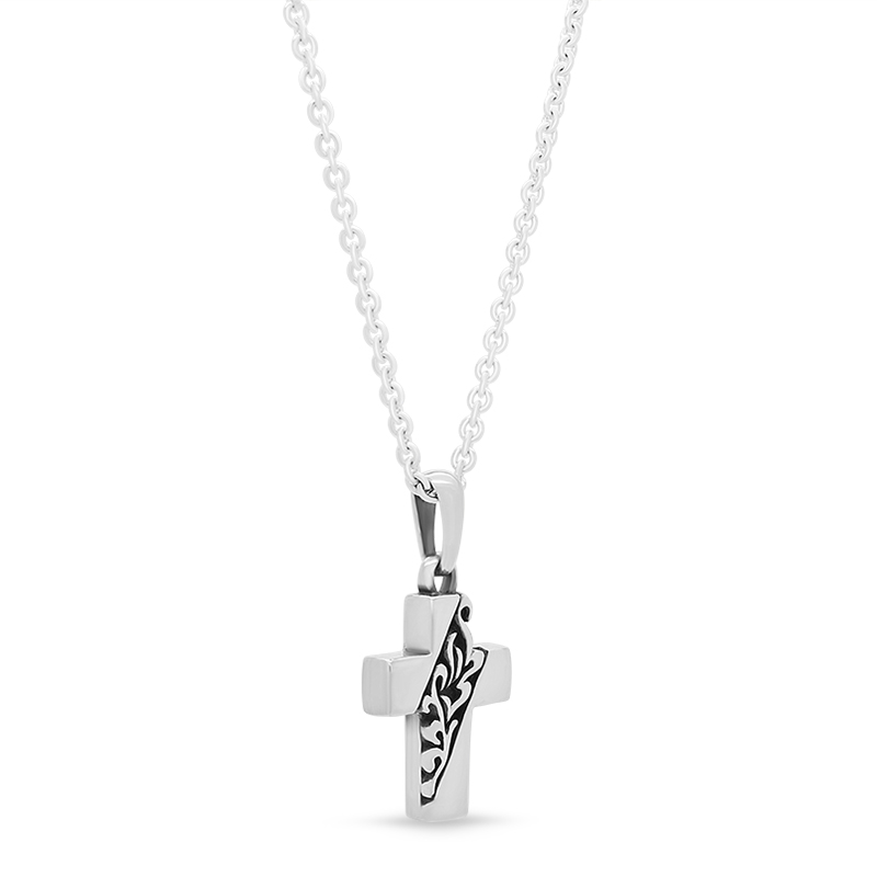シルバークロスネックレスの中央にアラベスクをレリーフ状に刻印。コンパクトなボディに立体感のある表情はシーンを選ばずに使うことが出来て便利です。
