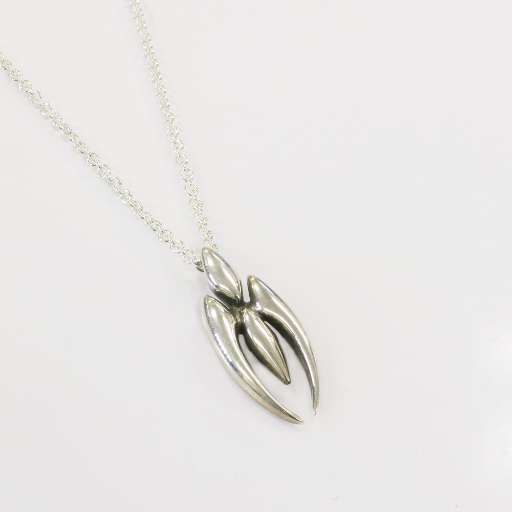 2本の曲線が美しいトライバルクロウ(爪)シルバーペンダント。FREE STYLEを代表するトライバルモチーフを鋭いシャープな2本のクロウで表現致しました。縦3cm×横1.2cmと使いやすいサイズ感と独特な爪の形状は様々なファッションにて使用可能。プレゼントにも最適です。付属のチェーンは2mm幅のアズキタイプで長さ50cmです。