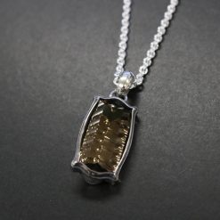 複雑にカットされたスモーキークオーツが光を取り込み華やかな表情を作り上げる。シルバーのボディはシンプルに仕上げられ石の美しさを強調しています。
