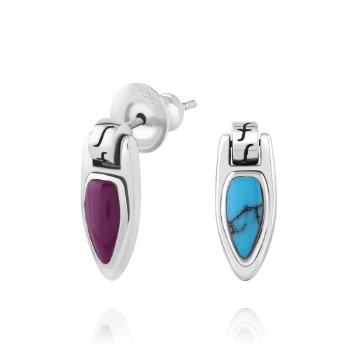 ブルーターコイズ & パープルアゲート リバーシブル シルバーピアス FSE607-BTQ