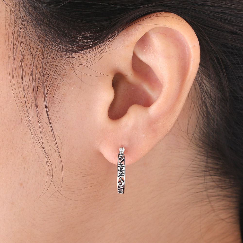 ストーンアラベスク シルバーフープピアス FSE933-BKCZ