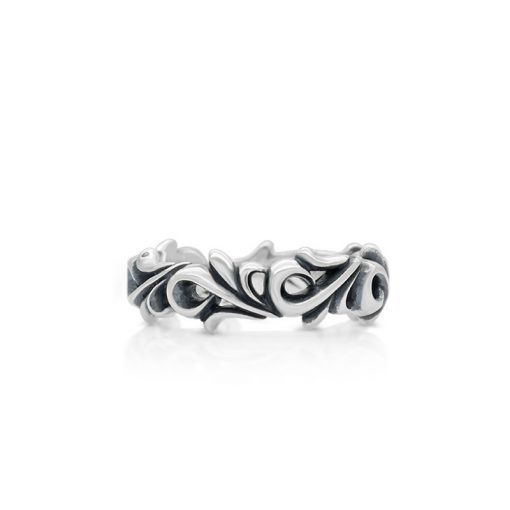 指輪が回る度に違った表情を見せる。緻密に刻まれた唐草彫りをご堪能ください。