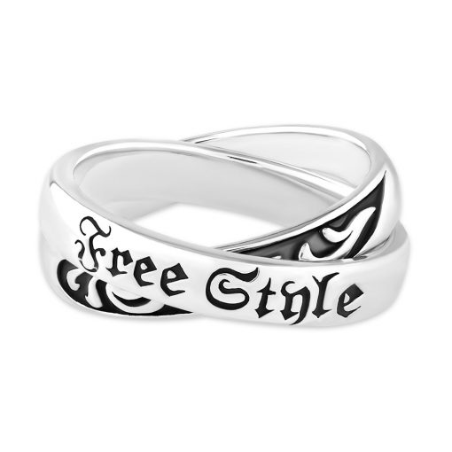 アラベスク(唐草模様)モチーフとブランドロゴを刻印したリングを組み合わせた2連シルバーリング。2連リング独特の存在感が際立ちます。リング内側にメッセージや記念日を刻印する事が出来ます。