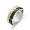 3色のカラーでデザインされた3連ステンレスリング。ステンレスの美しい光沢感と中央のデザインがシンプルな中にも存在感を放つ仕上がりになっております。バランスも細さも着けやすさを重視し、優しい着け心地です。リング内側にメッセージや記念日を刻印する事も出来ます。