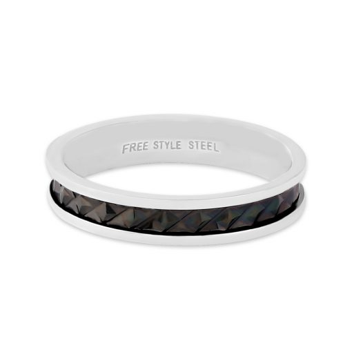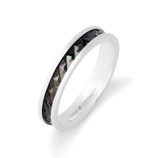 ステンレスボディにカッティングを施したシャープなリング。ブラックのチタンコーティングで印象も良く優しい着け心地になっております。医療用にも用いられる素材を使用しているので金属アレルギーの方も安心してお使い頂けます。ペアアイテムのFSSTR028-Gもおすすめです。