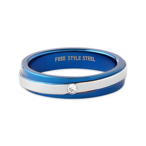 チタンブルーのさわやかな印象のステンレスリング。シンプルなリングもカラーリング一つでこんなにも印象的なリングに仕上がります。センターにセットされたジルコニアも印象的です。医療用にも用いられる素材を使用しているので金属アレルギーの方も安心してお使い頂けます。