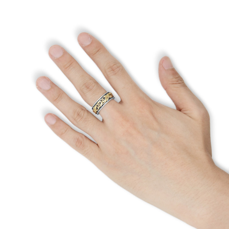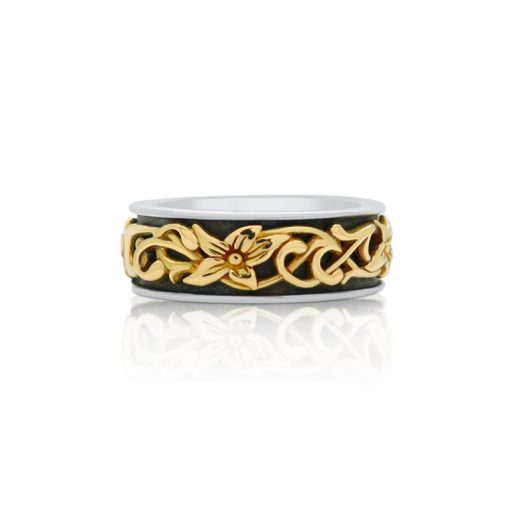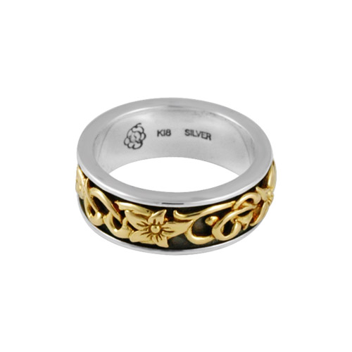 【カバラ コレクション】FREE STYLEから発信する高級ラインQabbalahから、18金ゴールドのフラワーレリーフがリング一周に巻き付く様にデザイン。シルバーとゴールドのコントラストが美しいコンビネーションリング。