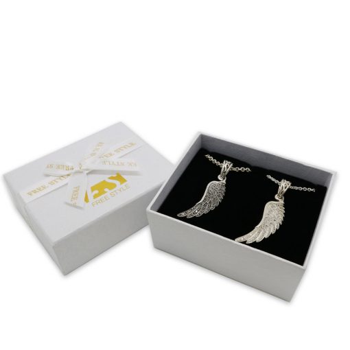天使の羽を写実的にデザインしたペンダント。石をあしらった意匠は他には無い存在感があります。同シリーズのFSP881と合わせて着用すると、よりボリューム感のあるアイテムに。