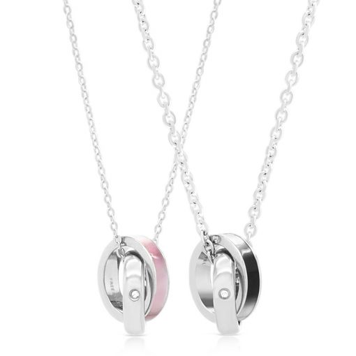 ピンクシェル ブラックシェル クロッシング ステンレスペアネックレス FSSTP047BSH-047PSH