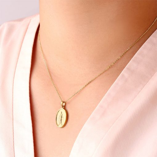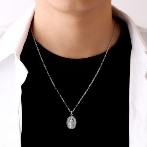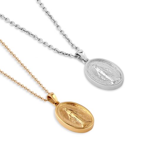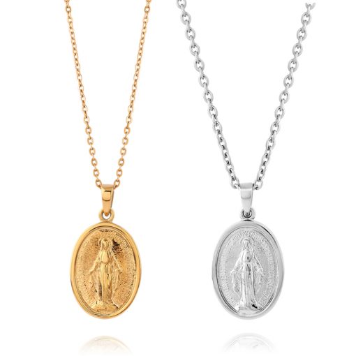 身に着ける人に奇跡を起こすと言われている「不思議のメダイ」をモチーフにしたステンレスネックレス。医療器具に使われる素材と同じステンレスを使用しているので、金属アレルギーの方でも安心してご着用いただけます。チェーンはレディースは37cm~40cm、メンズは45cmと50cmのお好きな長さでお使い頂けます。