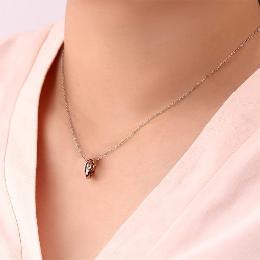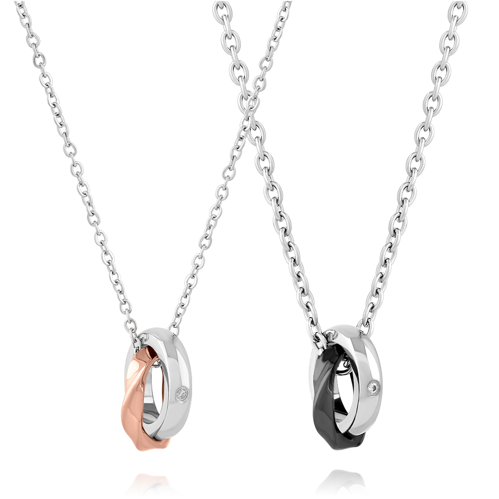 ツイストを加えたリングと、シンプルなリングを組み合わせたステンレスペンダント。医療器具に使われる素材と同じステンレスを使用しているので、金属アレルギーの方でも安心してご着用いただけます。付属のチェーンはレディースは40cm、メンズは45cmと50cmのお好きな長さでお使い頂けます。