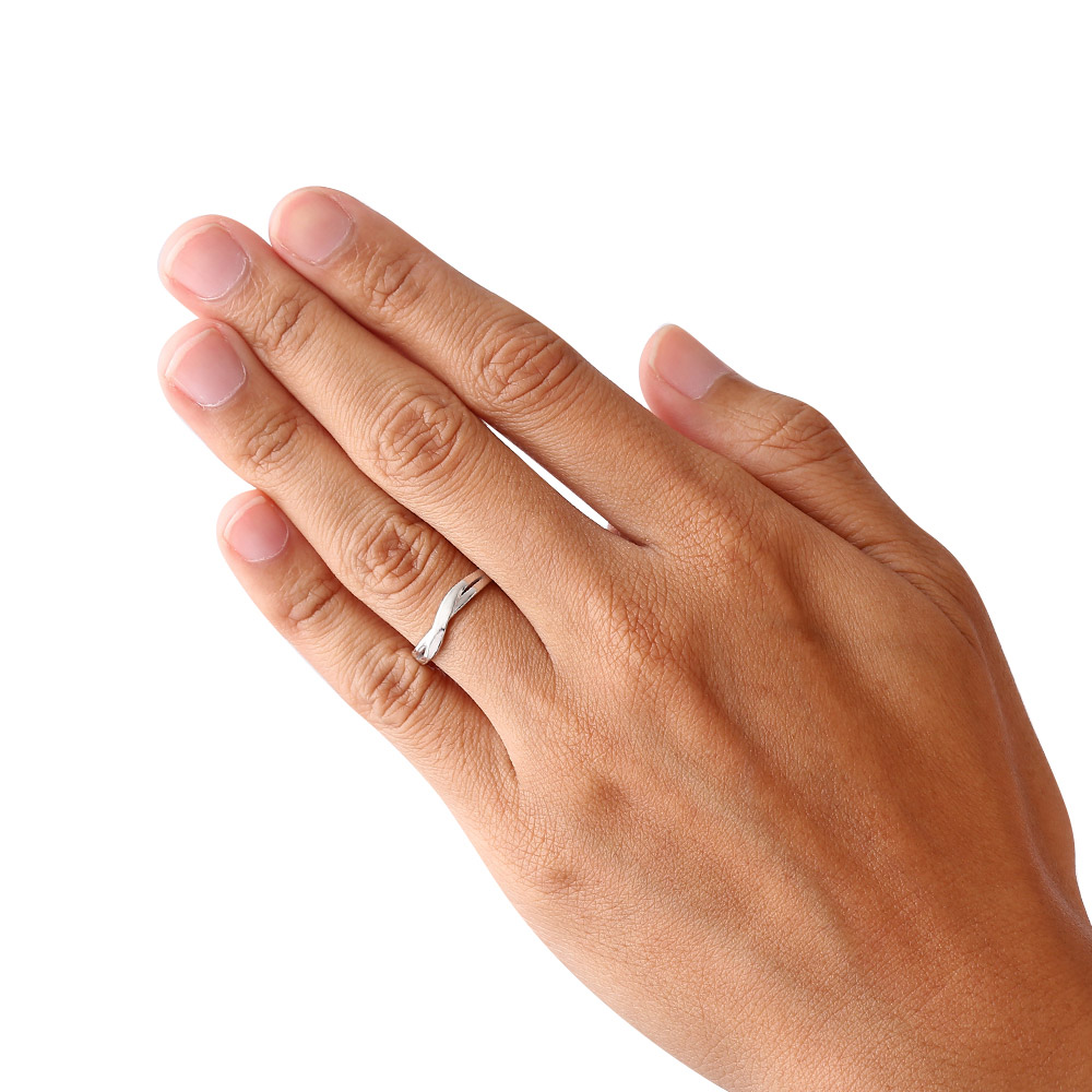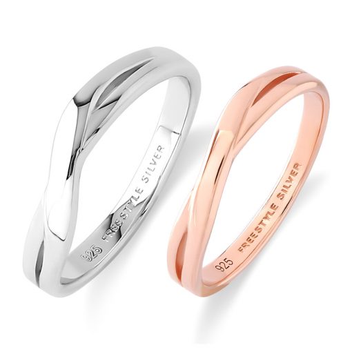 リングトップの中央部分がクロスした様に見えるシルバーリング。シンプルな中にも動きのあるデザインが特徴です。レディースリングにはピンクゴールドのコーティングを施し美しく仕上げております。リング内側に記念日やメッセージを刻印する事が出来ます。