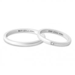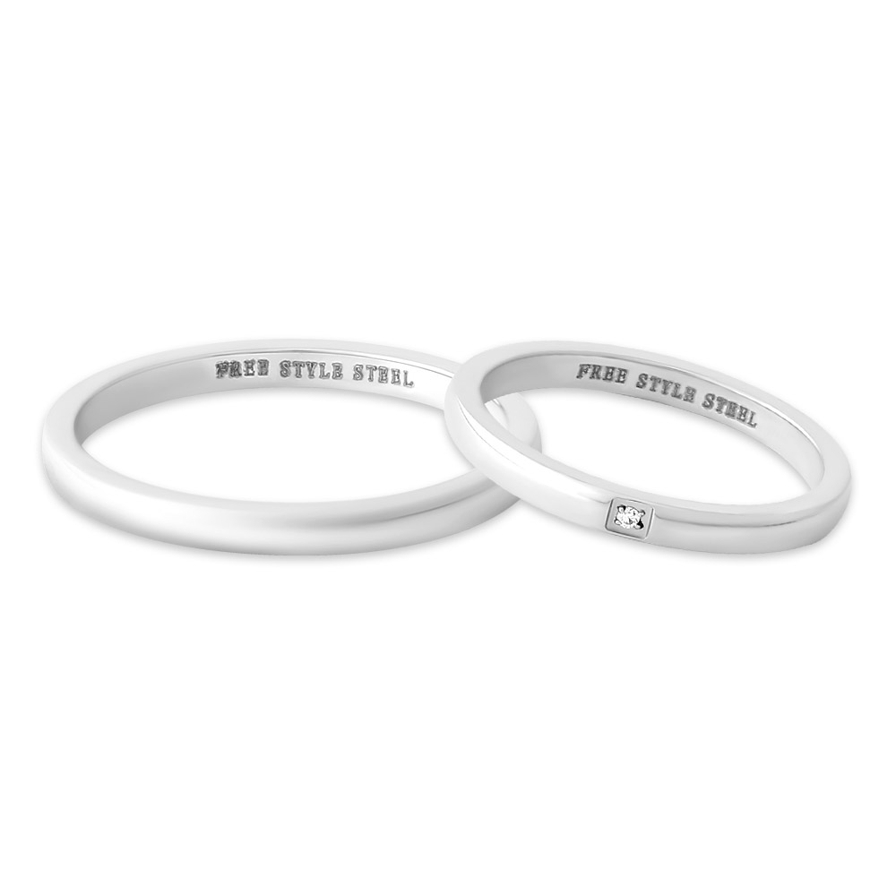 毎日着けるものだからシンプルに、着けやすい細めのペアリングに仕上がりました。ステンレスリングの中で不動のNo.1。つるんとした曲面が優しい表情を作り。レディースリングには中央にジルコニアをあしらい華やかさをプラスしてくれます。